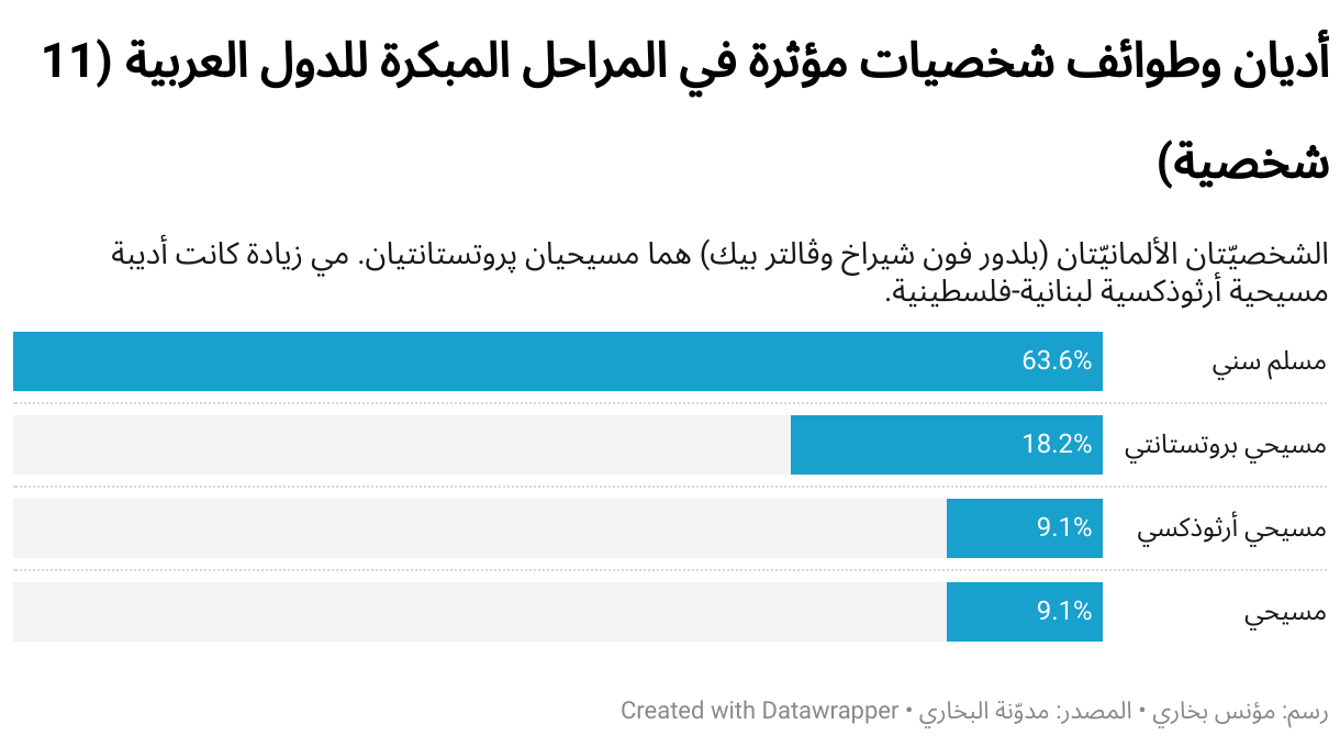 الشخصيّتان الألمانيّتان (بلدور فون شيراخ وڤالتر بيك) هما مسيحيان پروتستانتيان. مي زيادة كانت أديبة مسيحية أرثوذكسية لبنانية-فلسطينية.