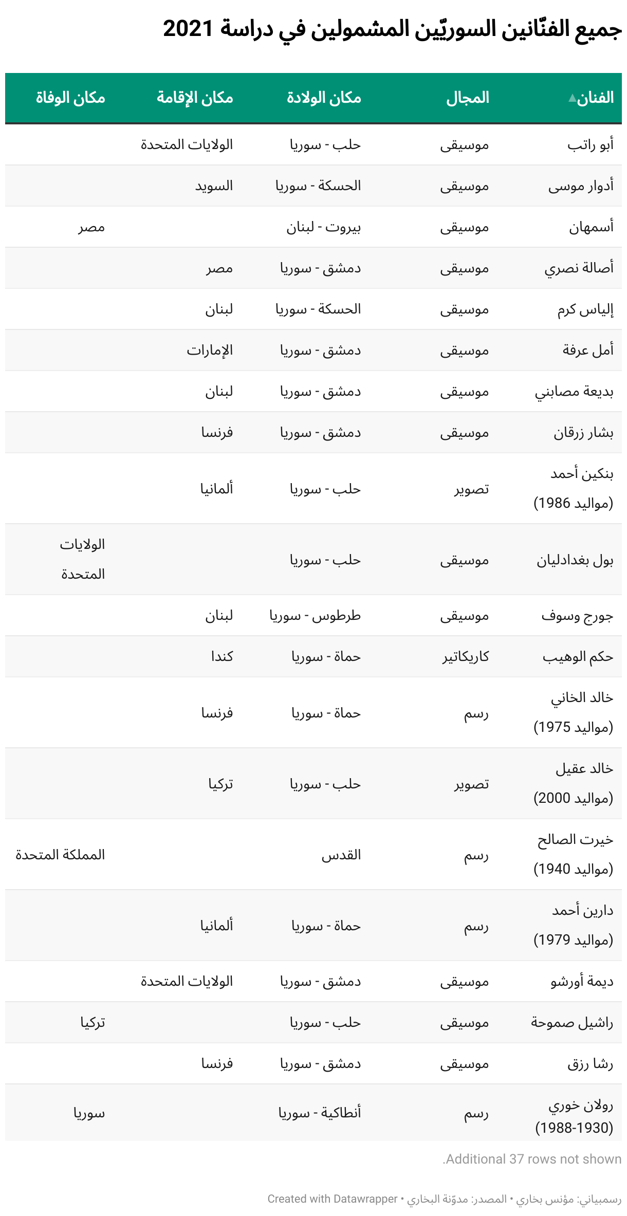 جميع الفنّانين السوريّين المشمولين في دراسة 2021