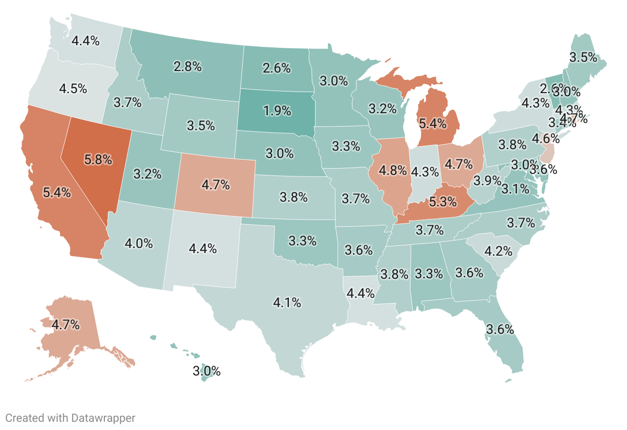 February unemployment rate of 50 states, seasonally adjusted