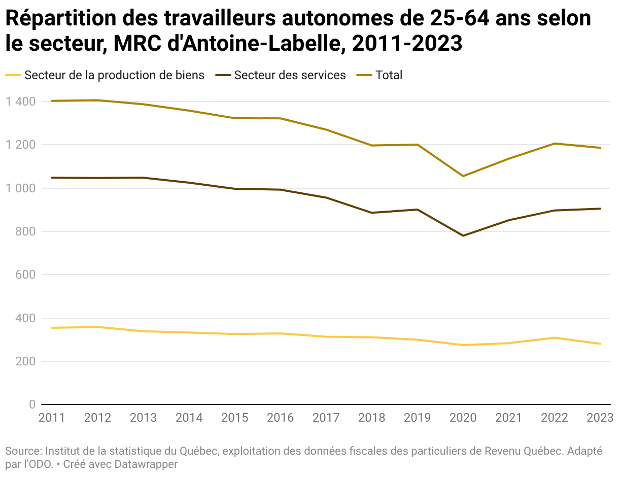 Répartition des travailleurs autonomes de 25-64 ans selon le secteur, MRC d'Antoine-Labelle, 2011-2023