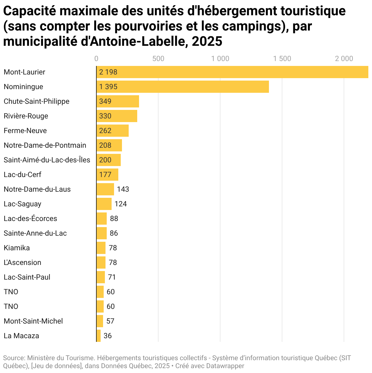 Capacité maximale des unités d'hébergement touristique (sans compter les pourvoiries et les campings), par municipalité d'Antoine-Labelle, 2025