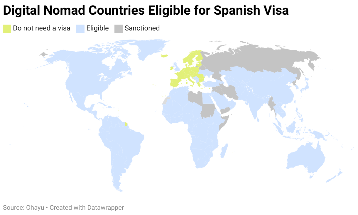 Digital Nomad Countries Eligible for Spanish Visa