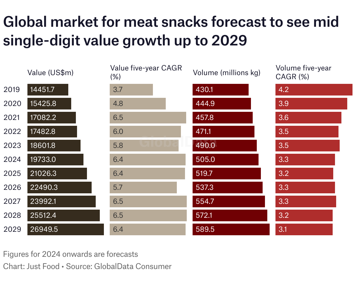 Global market for meat snacks forecast to see mid single-digit value growth up to 2029
