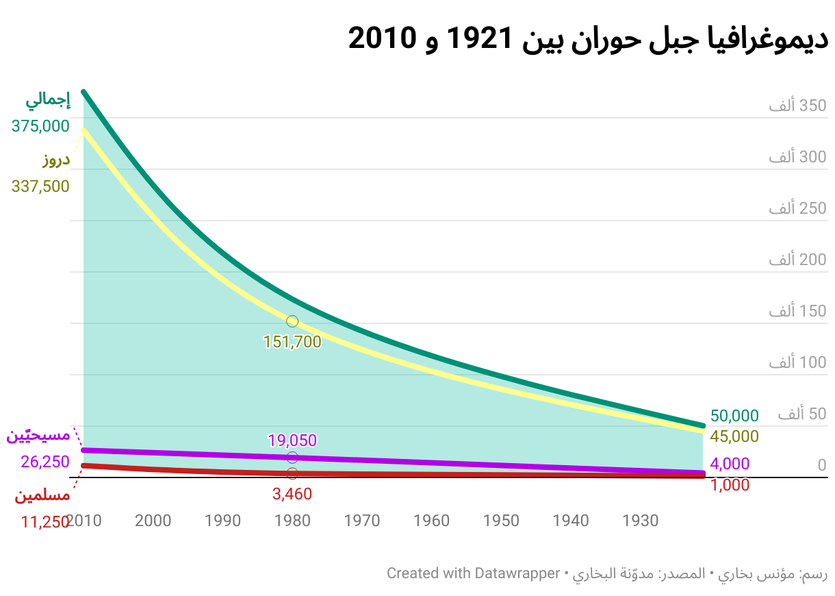 ديموغرافيا جبل حوران بين 1921 و 2010