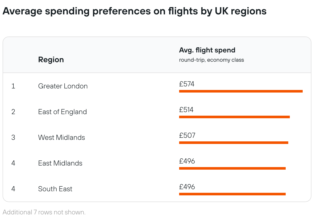 Average spending preferences on flights by UK regions