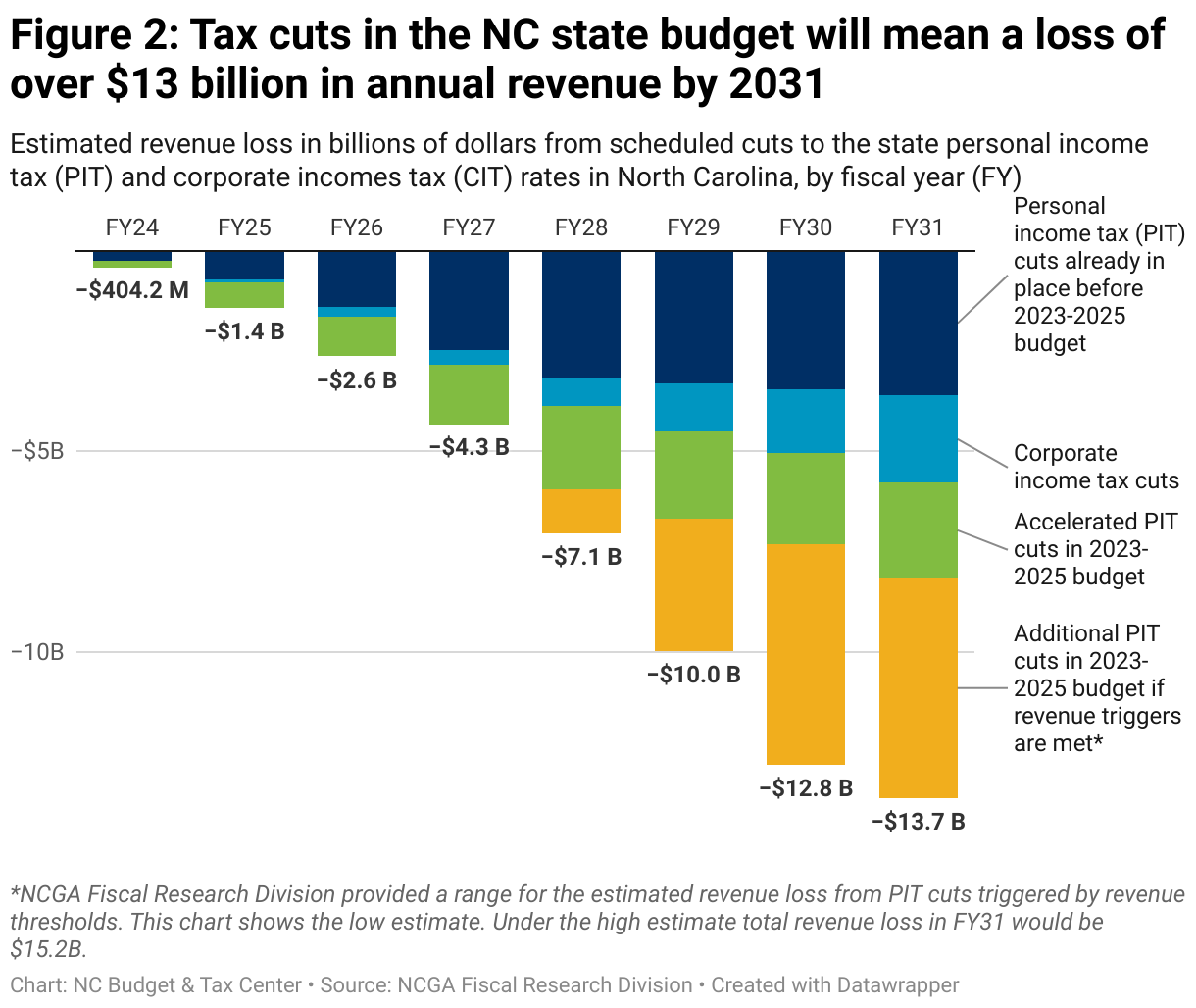 Figure 2: Tax cuts in the NC state budget will mean a loss of over $13 billion in annual revenue by 2031