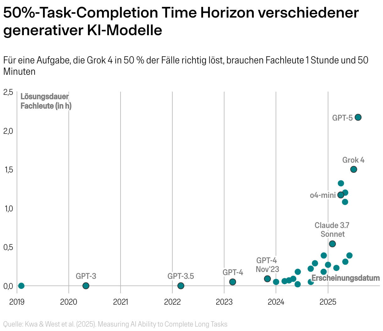 Für eine Aufgabe, die Grok 4 in 50 % der Fälle richtig löst, brauchen Fachleute 1 Stunde und 50 Minuten