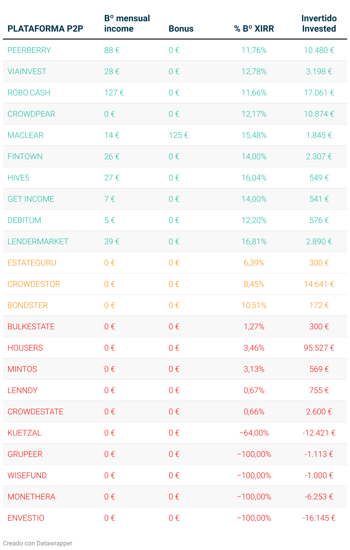 Plataformas con proyectos de dudoso cobro o denunciados en naranja y rojo
