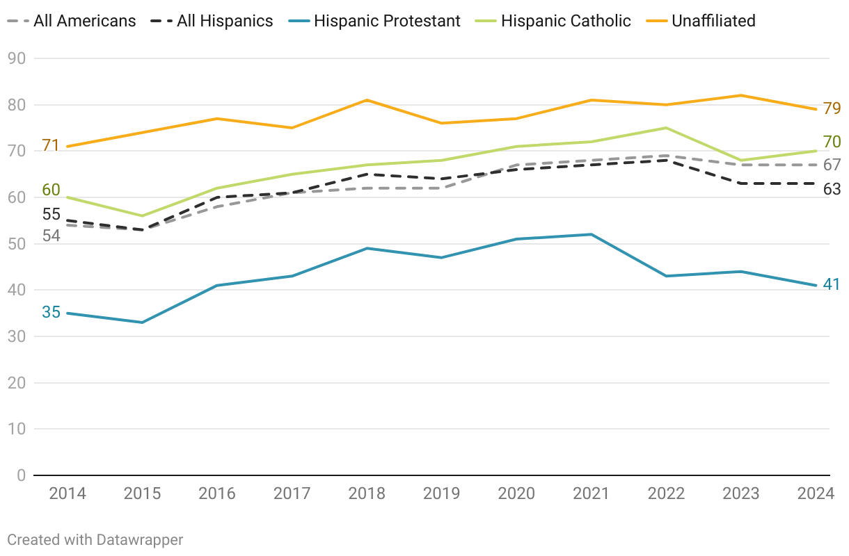 Percent who favor allowing same-sex couples to marry legally: