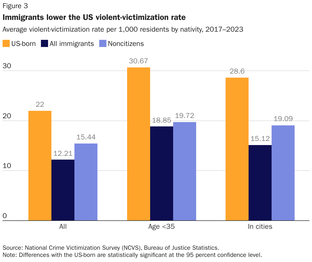 Average violent-victimization rate per 1,000 residents by nativity, 2017–2023