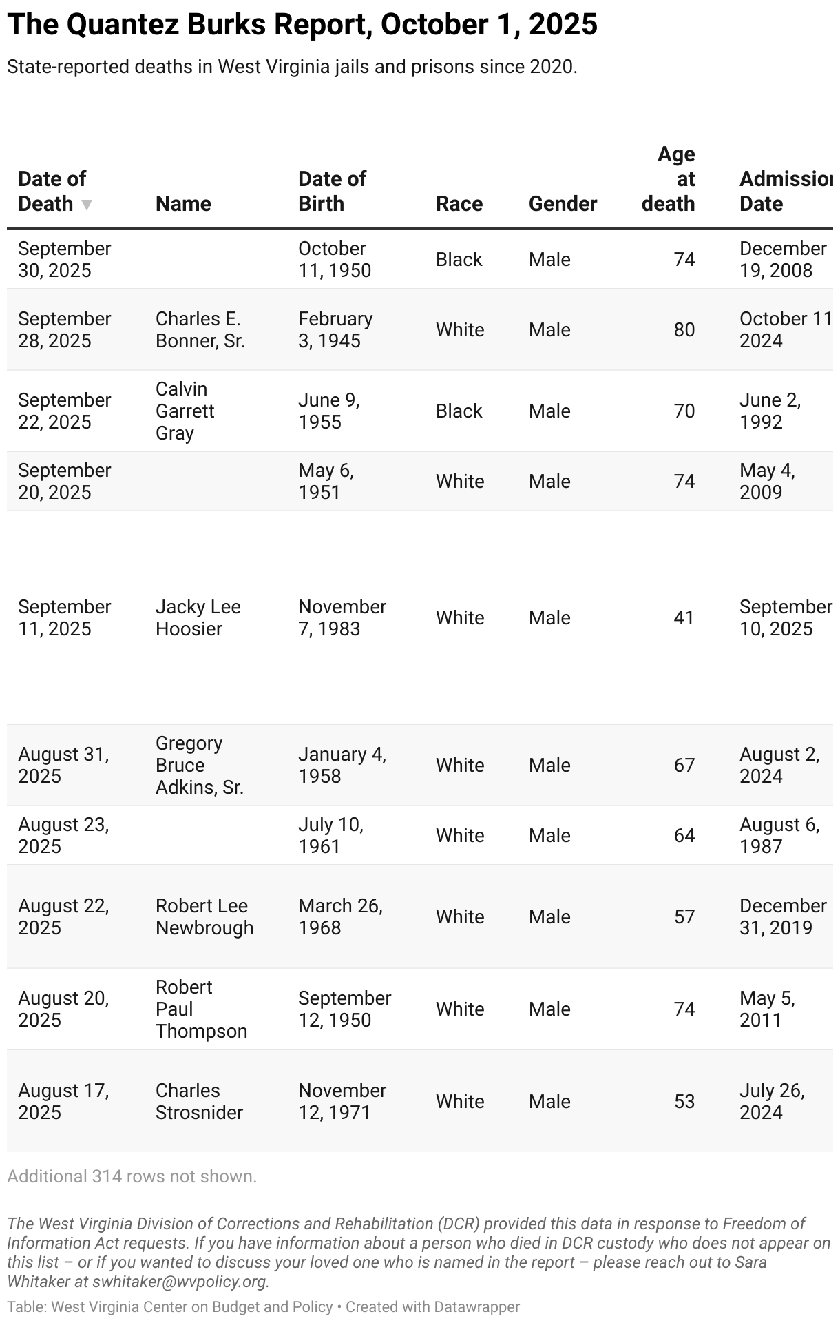 State-reported deaths in West Virginia jails and prisons since 2020.