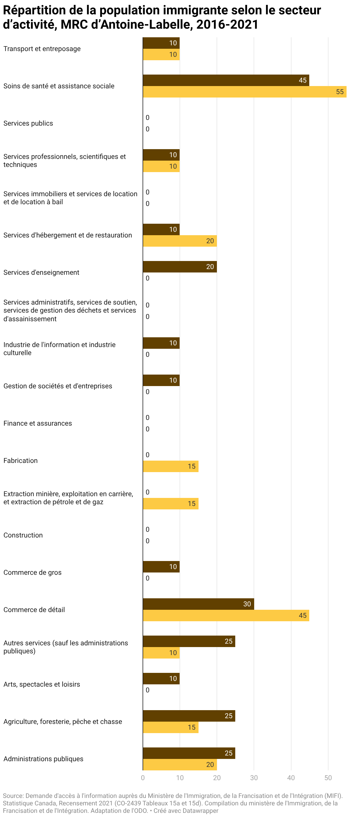 Répartition de la population immigrante selon le secteur d’activité, MRC d’Antoine-Labelle, 2016-2021