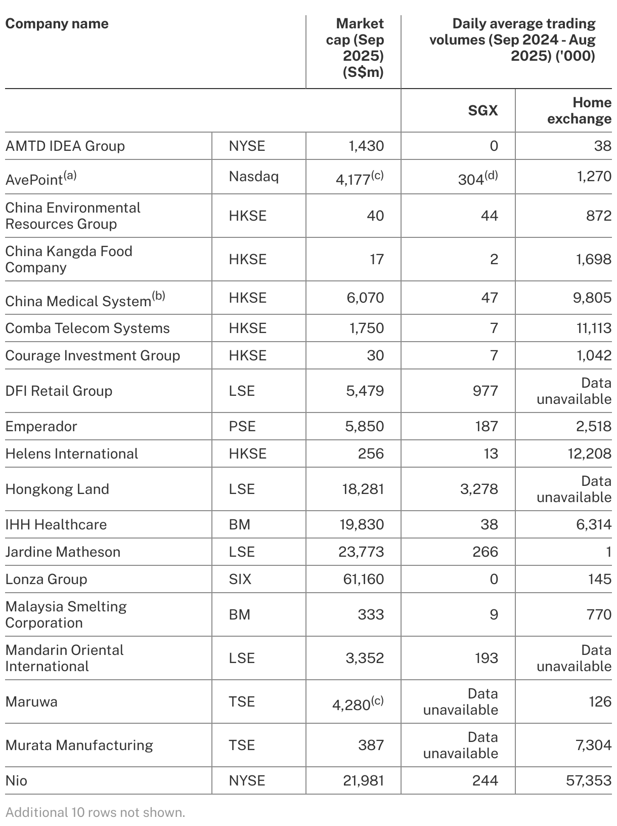 Secondary listings’ average daily turnover (Sep 2024 - Aug 2025)