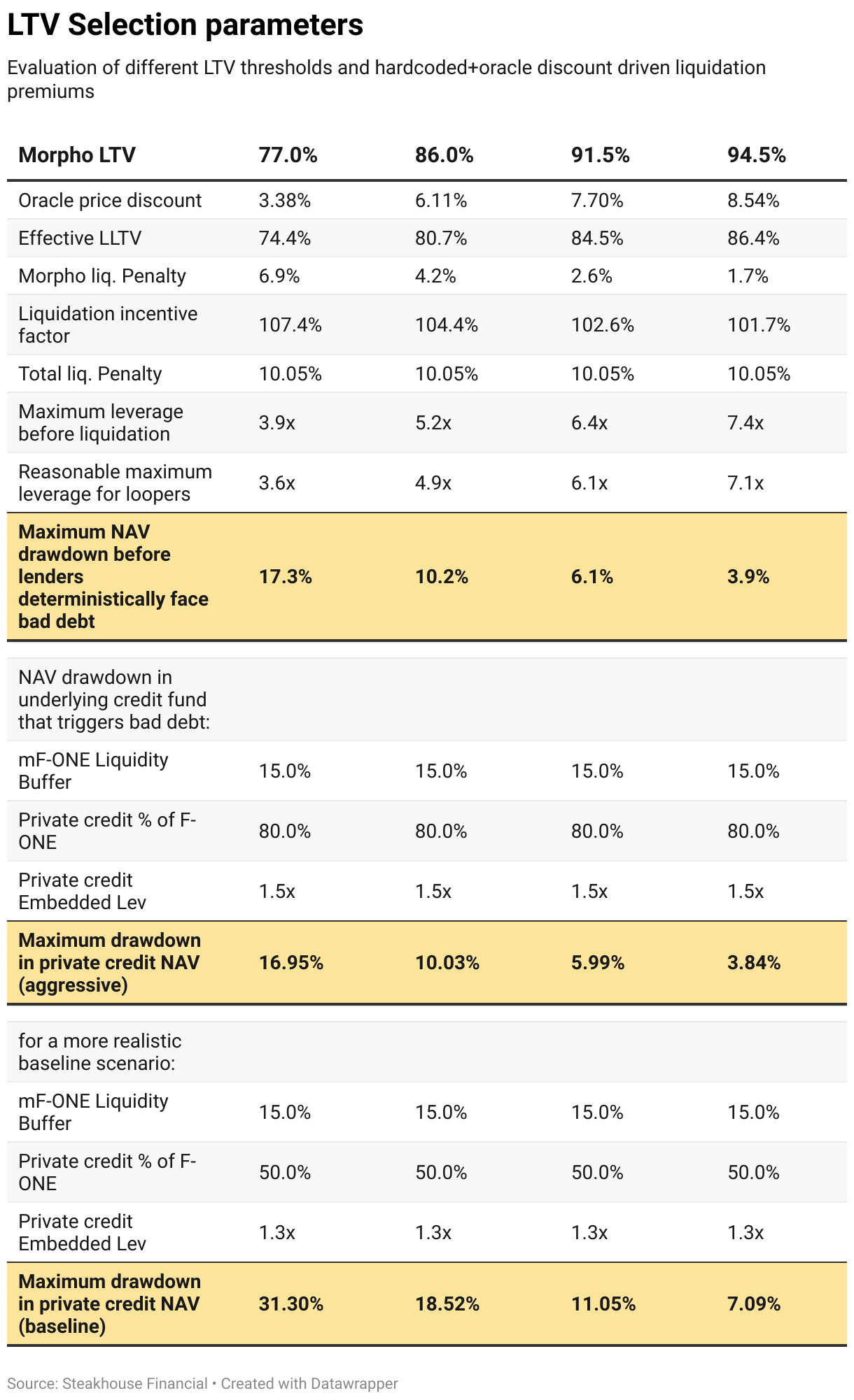 Evaluation of different LTV thresholds and hardcoded+oracle discount driven liquidation premiums