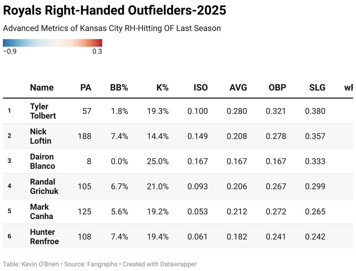 Advanced Metrics of Kansas City RH-Hitting OF Last Season
