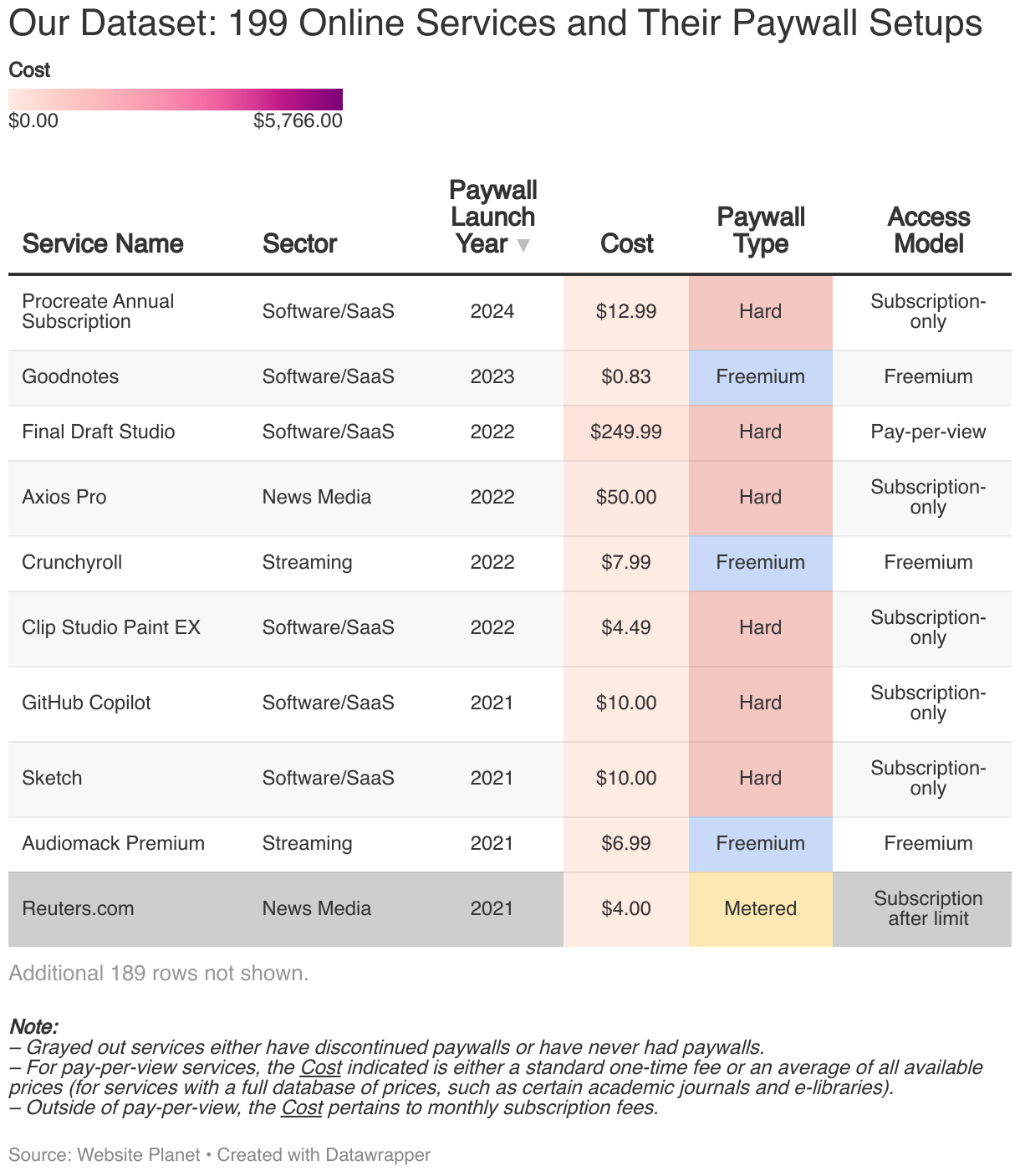 Our Dataset: 199 Online Services and Their Paywall Setups