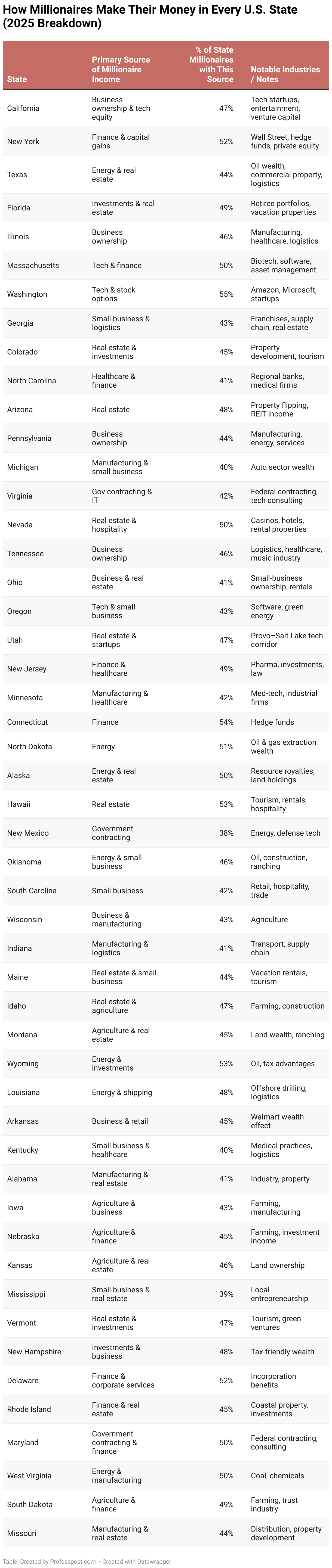How Millionaires Make Their Money in Every U.S. State (2025 Breakdown)