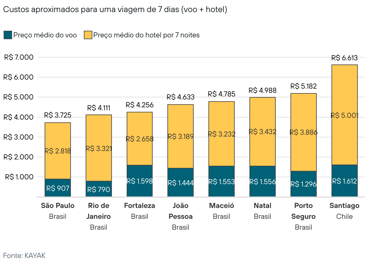 Custos aproximados para uma viagem de 7 dias (voo + hotel)
