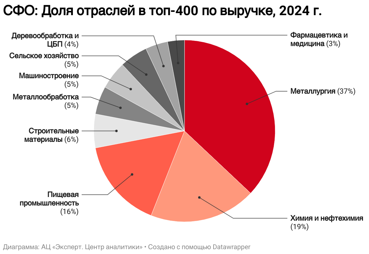 СФО: Доля отраслей в топ-400 по выручке, 2024 г.