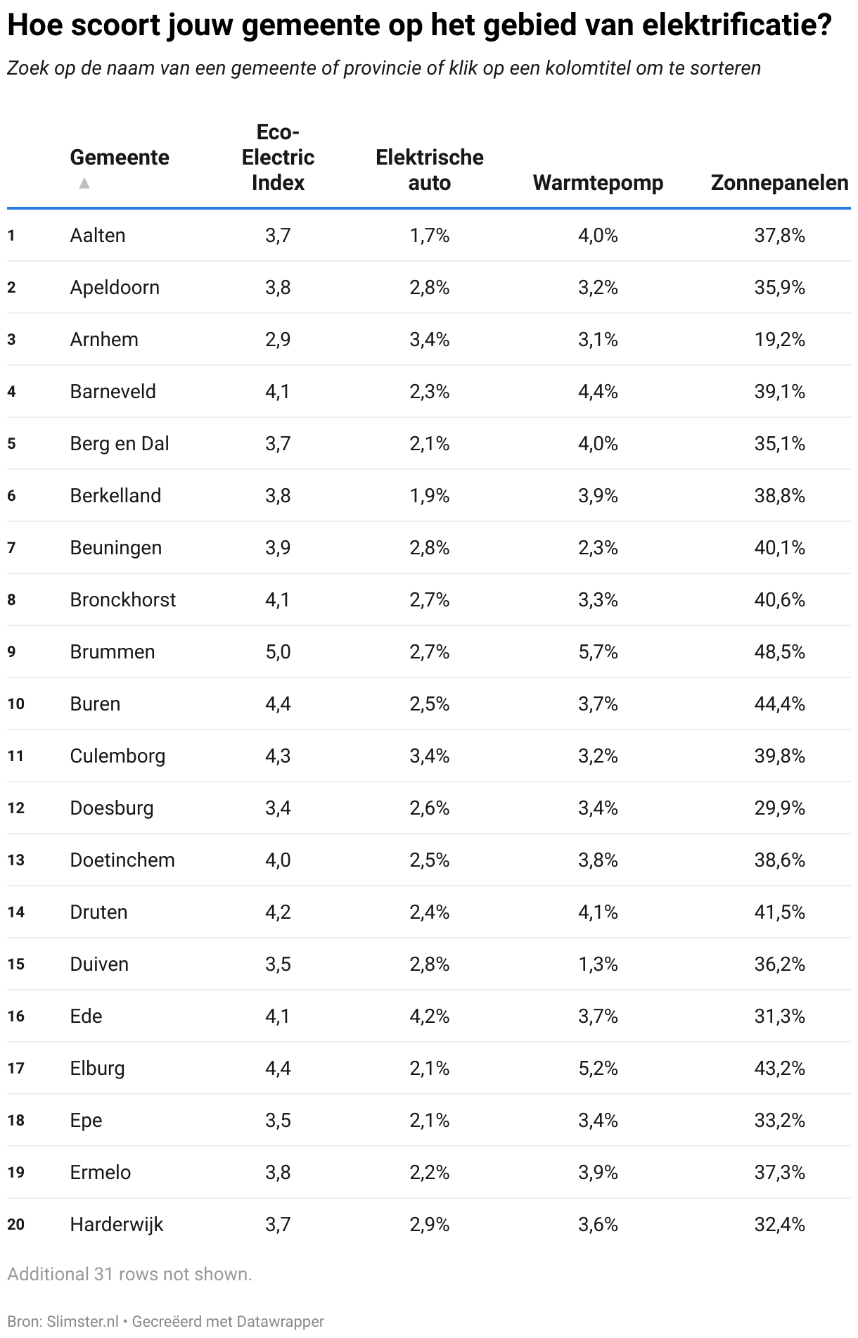 Zoek op de naam van een gemeente of provincie of klik op een kolomtitel om te sorteren