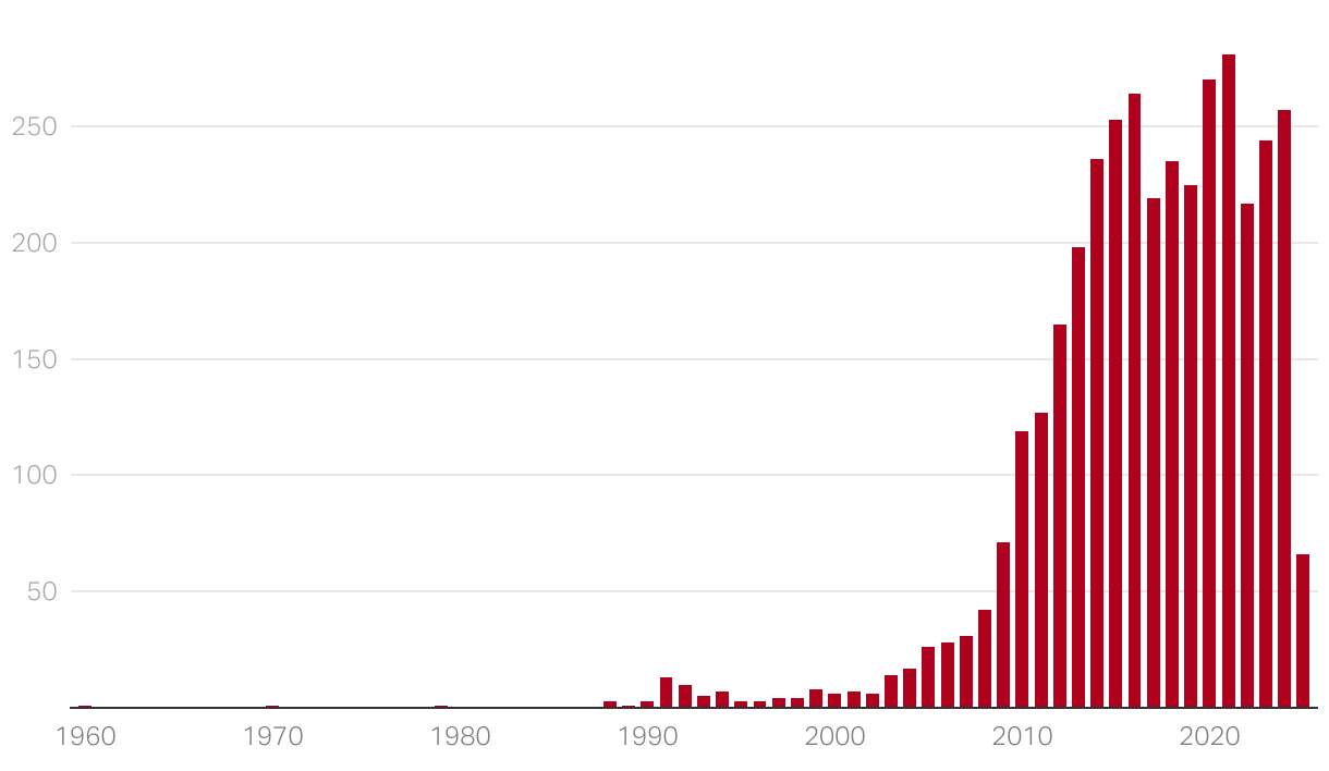 The number of published articles on TOR and ageing in the online database of the US National Library of Medicine.