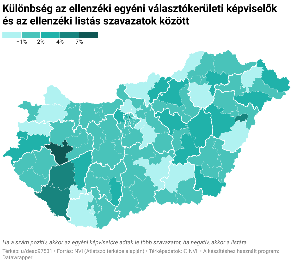 Különbség az ellenzéki egyéni választókerületi képviselők és az ellenzéki listás szavazatok között
