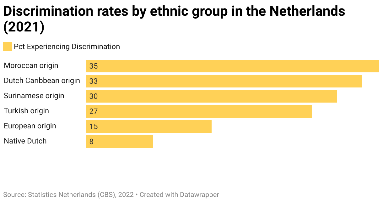 Discrimination rates by ethnic group in the Netherlands (2021)