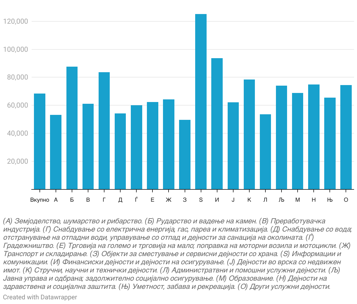 (А) Земјоделство, шумарство и рибарство. (Б) Рударство и вадење на камен. (В) Преработувачка индустрија. (Г) Снабдување со електрична енергија, гас, пареа и климатизација. (Д) Снабдување со вода; отстранување на отпадни води, управување со отпад и дејности за санација на околината. (Ѓ) Градежништво. (Е) Трговија на големо и трговија на мало; поправка на моторни возила и мотоцикли. (Ж) Транспорт и складирање. (З) Објекти за сместување и сервисни дејности со храна. (Ѕ) Информации и комуникации. (И) Финансиски дејности и дејности на осигурување. (Ј) Дејности во врска со недвижен имот. (К) Стручни, научни и технички дејности. (Л) Администратвни и помошни услужни дејности. (Љ) Јавна управа и одбрана; задолжително социјално осигурување. (М) Образование. (Н) Дејности на здравствена и социјална заштита. (Њ) Уметност, забава и рекреација. (О) Други услужни дејности.