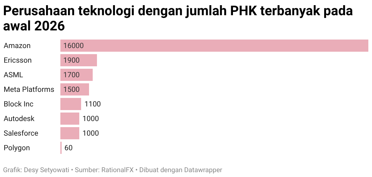 Perusahaan teknologi dengan jumlah PHK terbanyak pada awal 2026