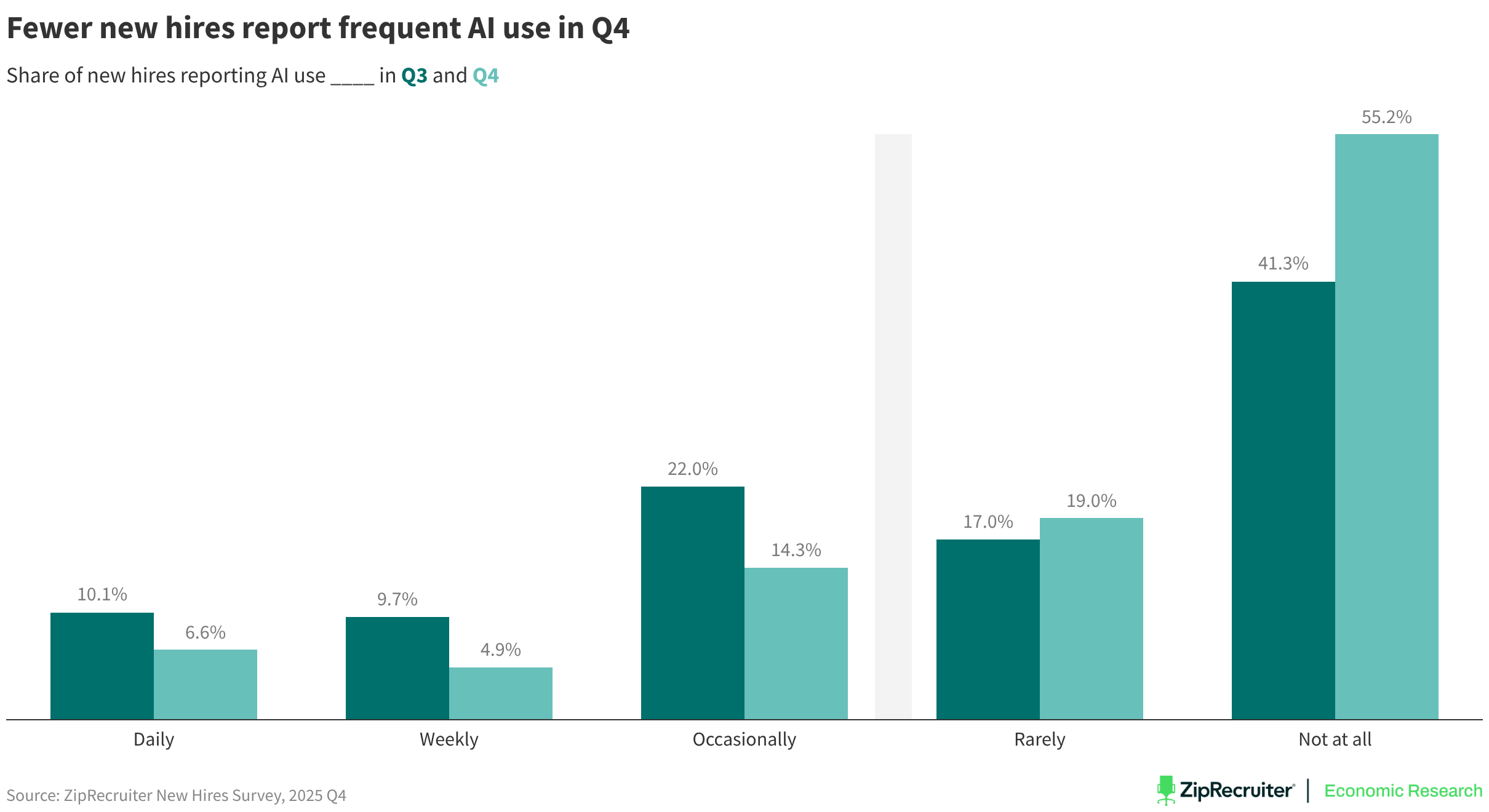 Share of new hires reporting AI use ____ in Q3 and Q4