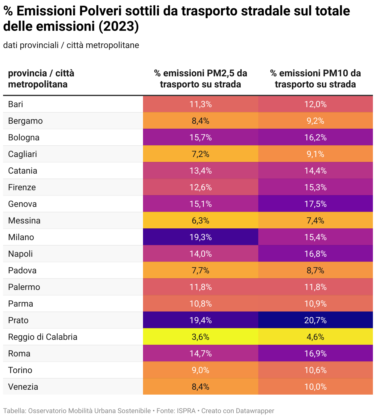 % Emissioni Polveri sottili da trasporto stradale sul totale delle emissioni (2023)
