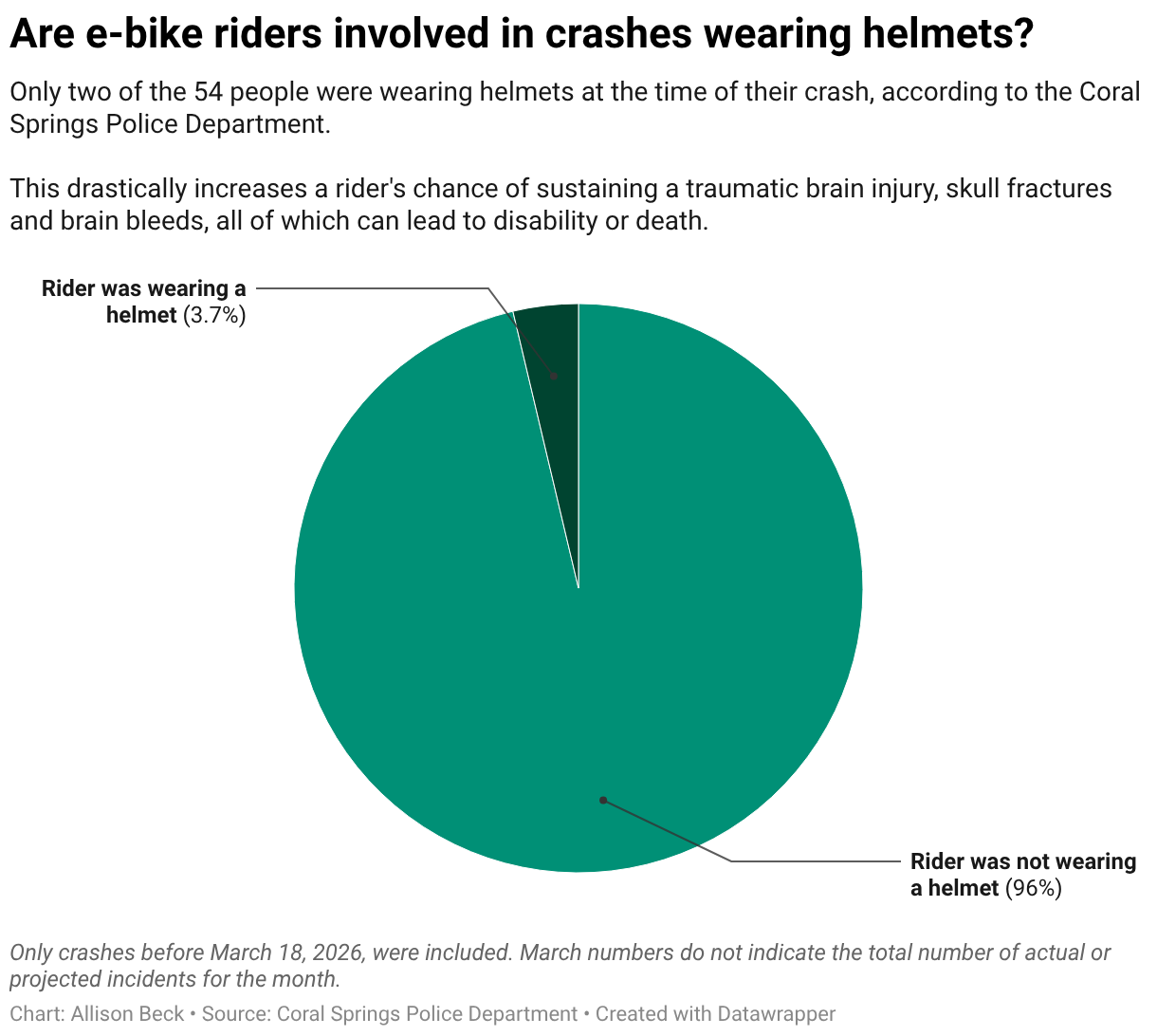 Only two of the 54 people were wearing helmets at the time of their crash, according to the Coral Springs Police Department.