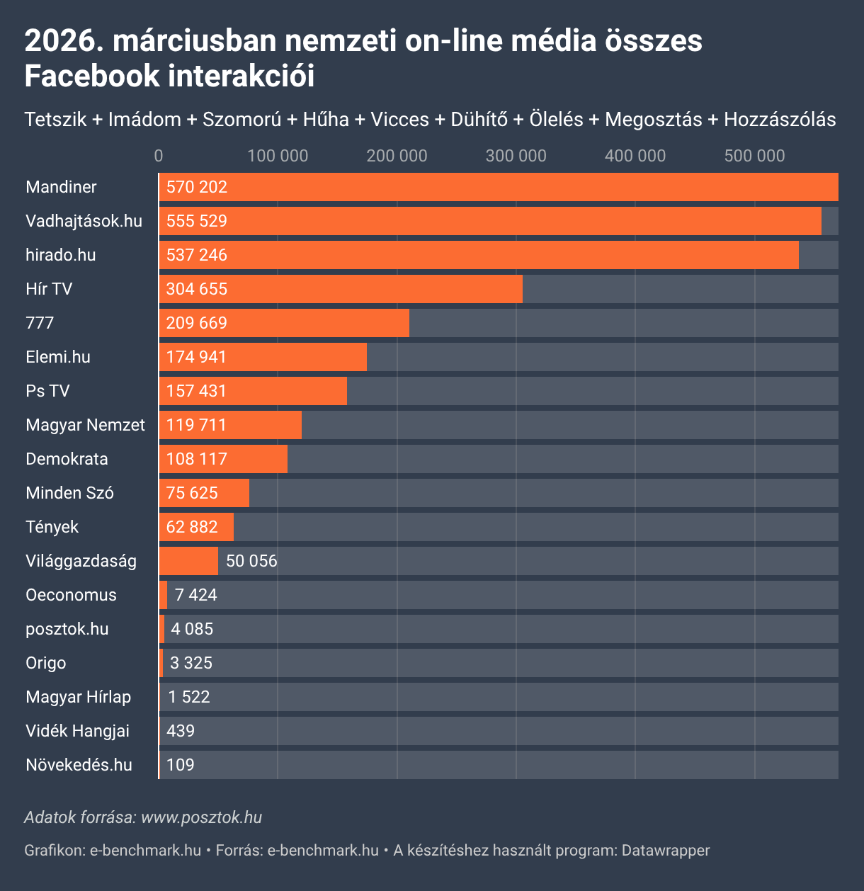 2026. márciusban nemzeti on-line média összes Facebook interakciói