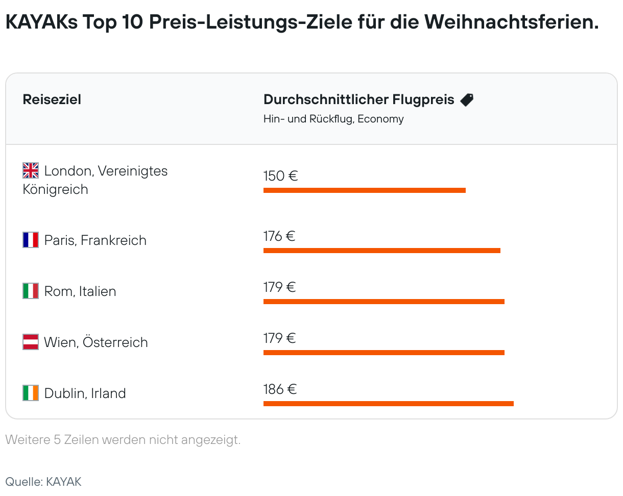 KAYAKs Top 10 Preis-Leistungs-Ziele für die Weihnachtsferien.