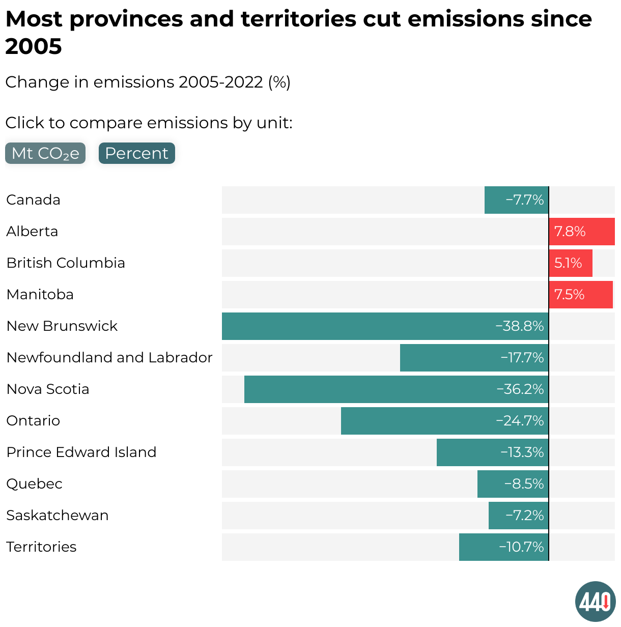 Change in emissions 2005-2022 (%) Click to compare emissions by unit: Mt CO₂e Percent