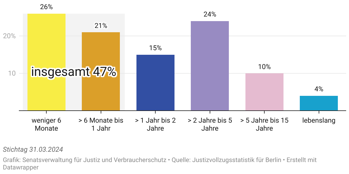 Grafik: Senatsverwaltung für Justiz und VerbraucherschutzQuelle: Justizvollzugsstatistik für BerlinGrafik herunterladenErstellt mit Datawrapper