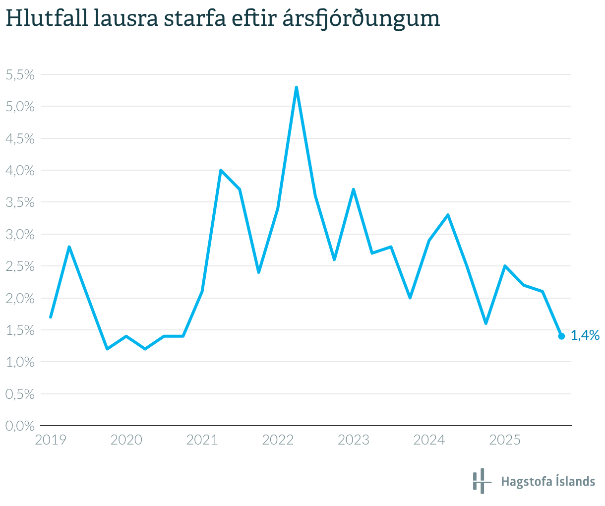 Hlutfall lausra starfa eftir ársfjórðungum