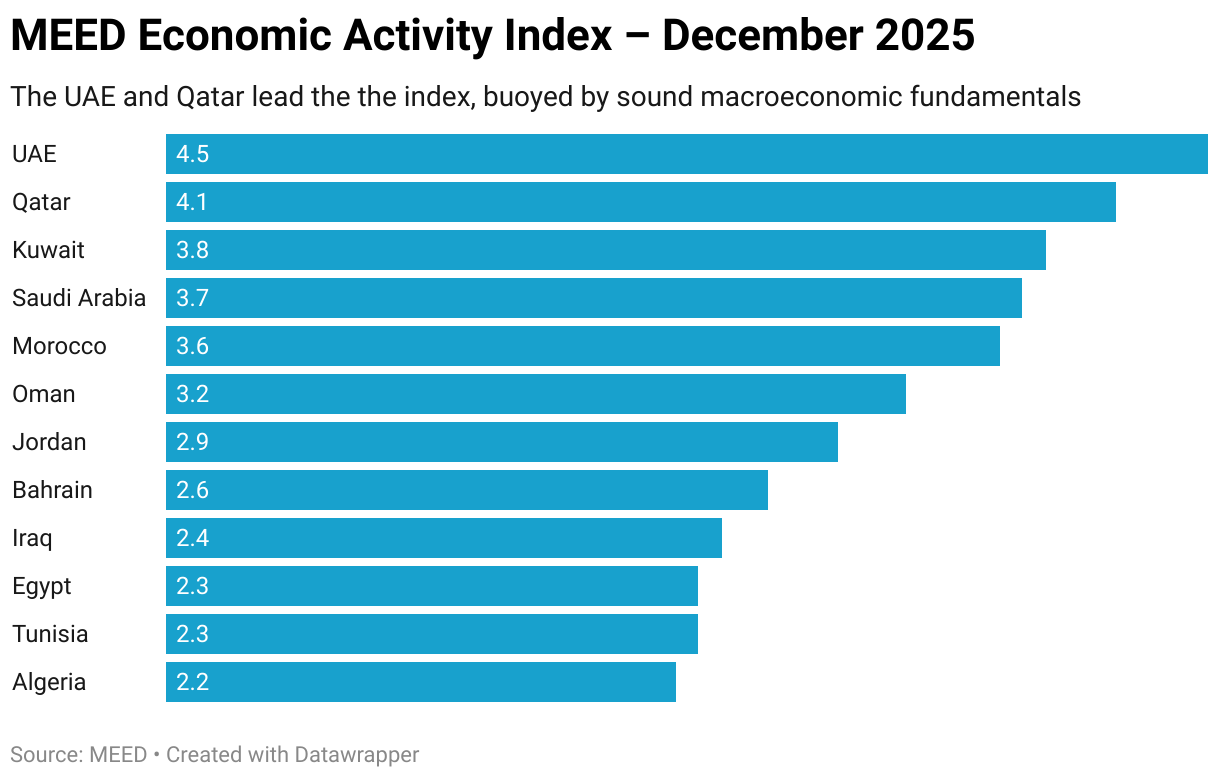The UAE and Qatar lead the the index, buoyed by sound macroeconomic fundamentals