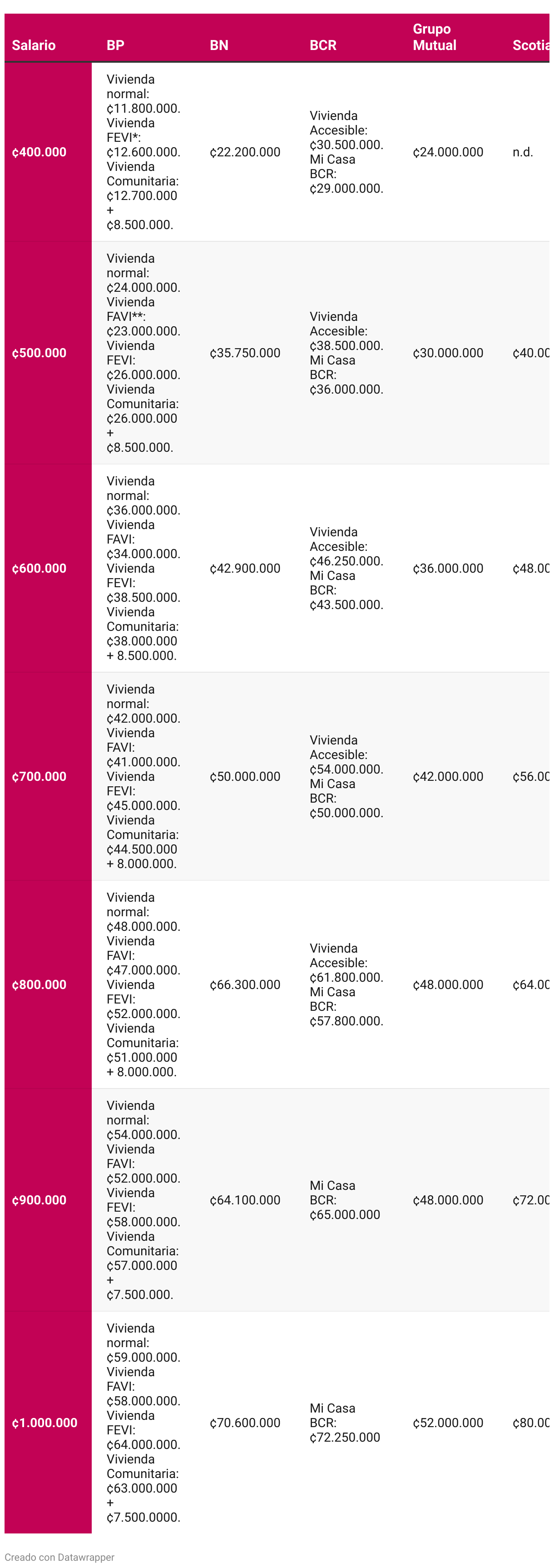 El monto máximo de crédito para soluciones de vivienda es limitado en los salarios de ¢400.000.