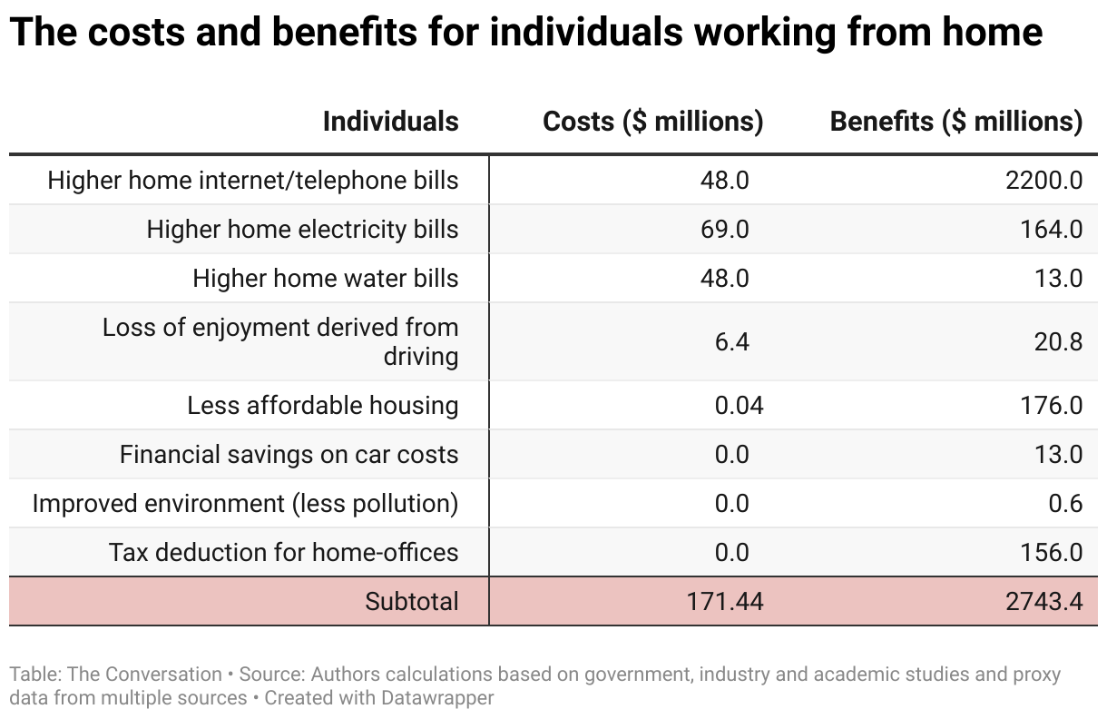 The costs and benefits for individuals working from home