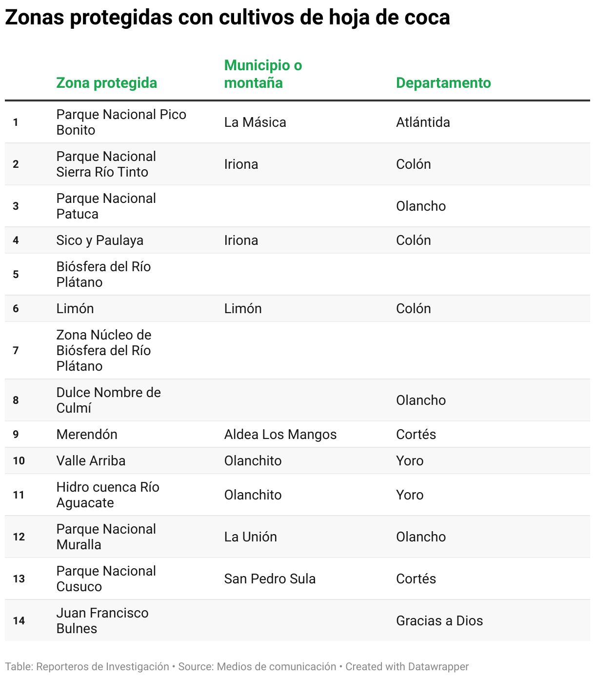 Zonas protegidas con cultivos de hoja de coca