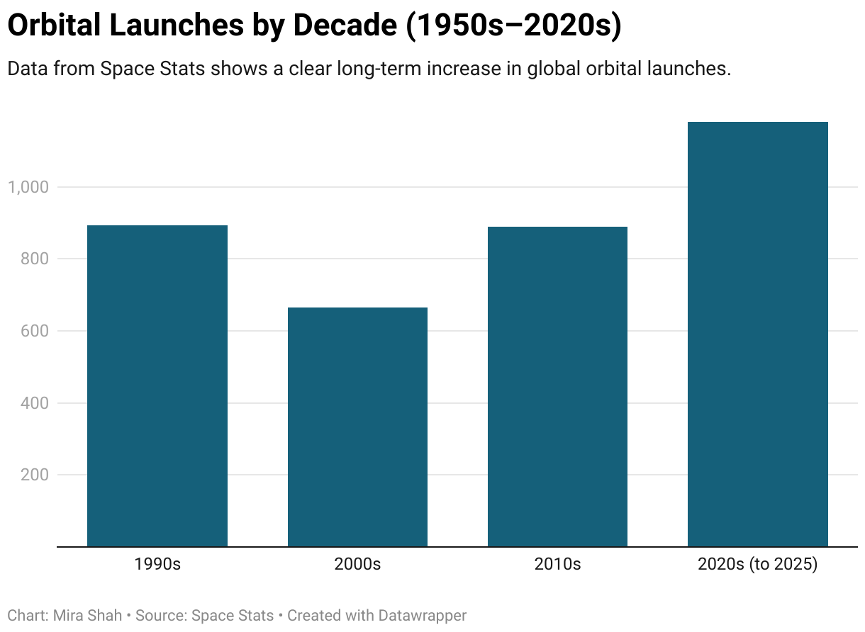 Data from Space Stats shows a clear long-term increase in global orbital launches.