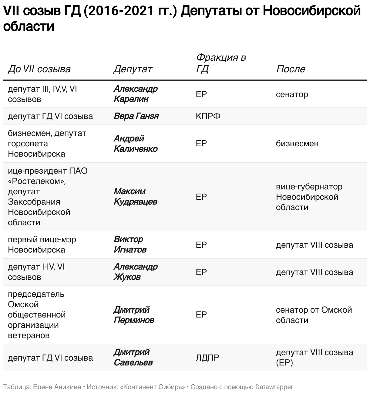 VII созыв ГД (2016-2021 гг.) Депутаты от Новосибирской области