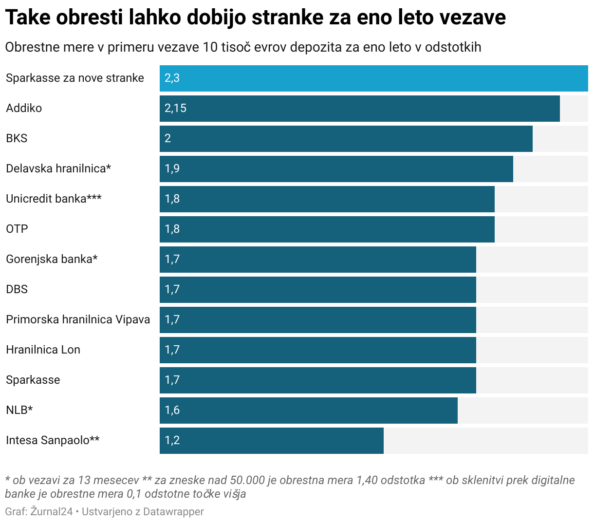 Obrestne mere v primeru vezave 10 tisoč evrov depozita za eno leto v odstotkih