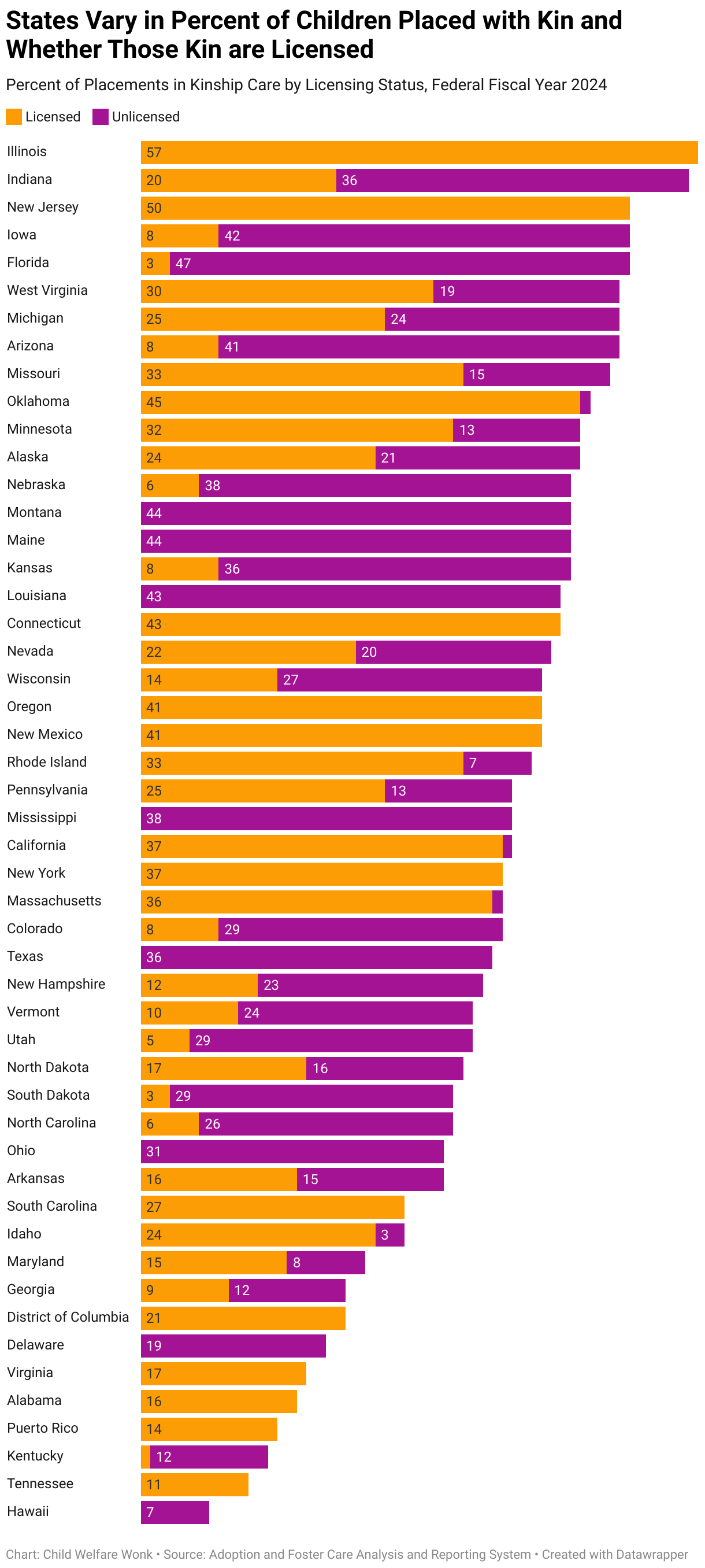 Percent of Placements in Kinship Care by Licensing Status, Federal Fiscal Year 2024