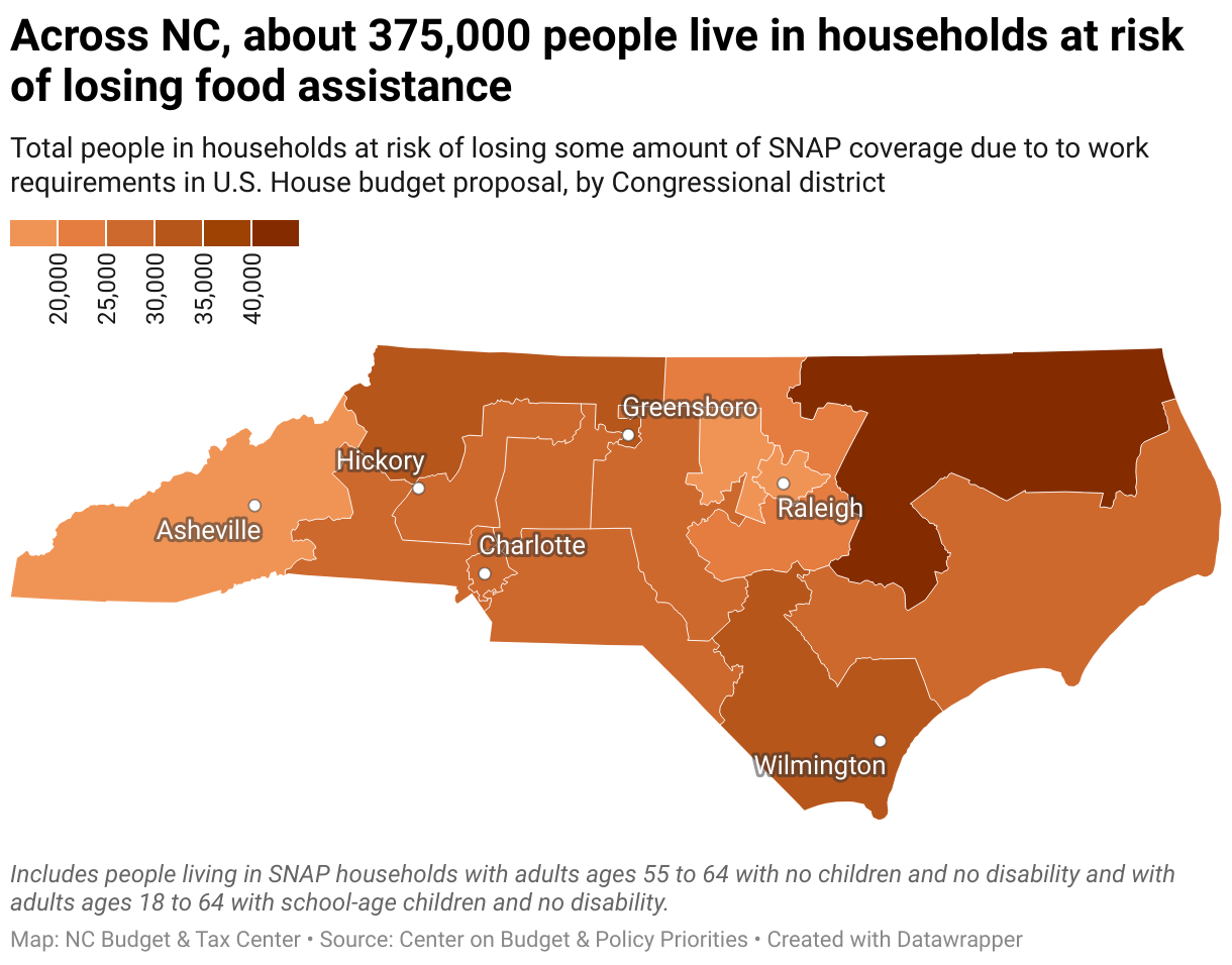 Total people in households at risk of losing some amount of SNAP coverage due to to work requirements in U.S. House budget proposal, by Congressional district