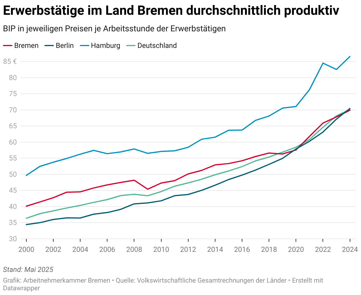 BIP in jeweiligen Preisen je Arbeitsstunde der Erwerbstätigen