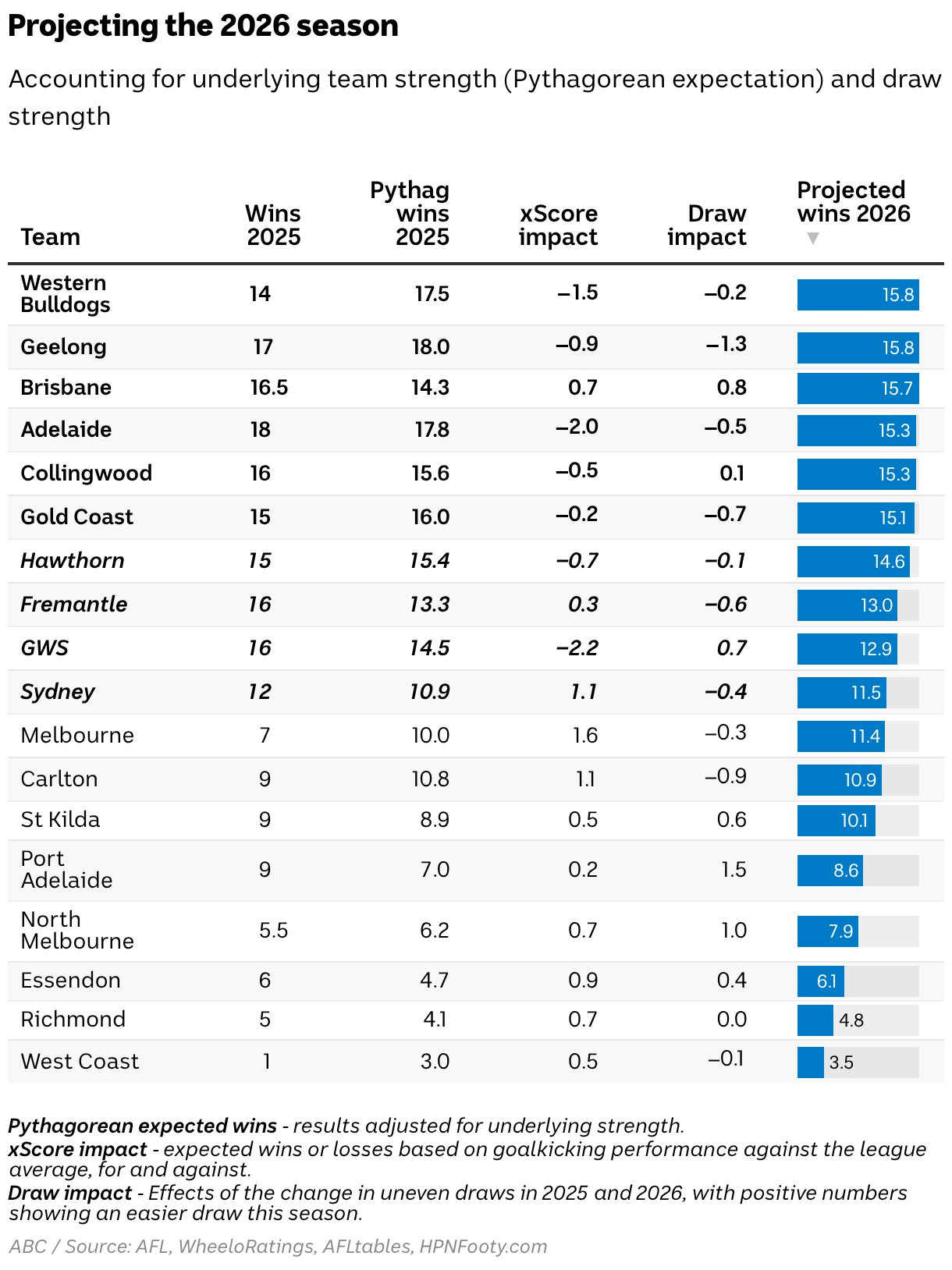 Accounting for underlying team strength (Pythagorean expectation) and draw strength