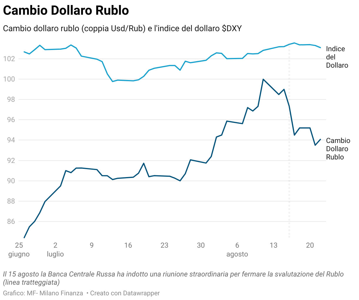 Cambio dollaro rublo (coppia Usd/Rub) e l'indice del dollaro $DXY
