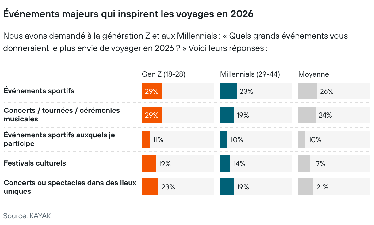 Nous avons demandé à la génération Z et aux Millennials : « Quels grands événements vous donneraient le plus envie de voyager en 2026 ? » Voici leurs réponses :